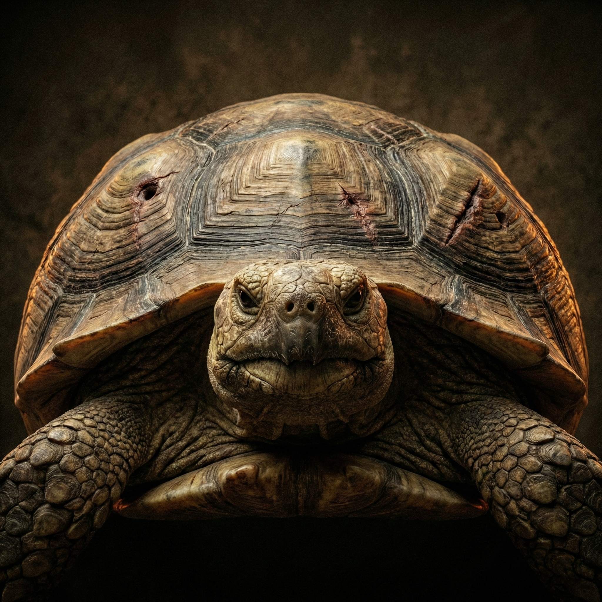 Its shell had absorbed impacts that would have crushed lesser creatures. Scarred and reinforced by years of slow growth — a living tank. When rescuers traced the shell’s fracture patterns it resembled reactive armor plating. Nature’s own defense system.